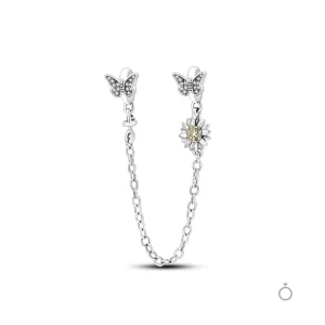 El círculo superior incluye una fila de circonitas cúbicas en pavé a lo largo del borde, mientras que el otro lado se ha decorado con el logo .